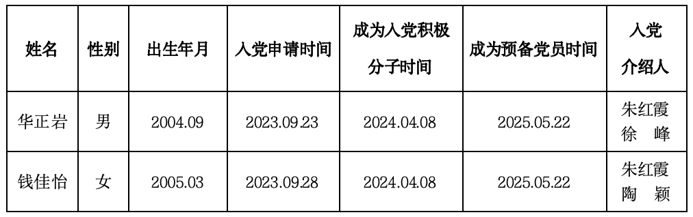 2025年5月教工党支部吸收预备党员的公示