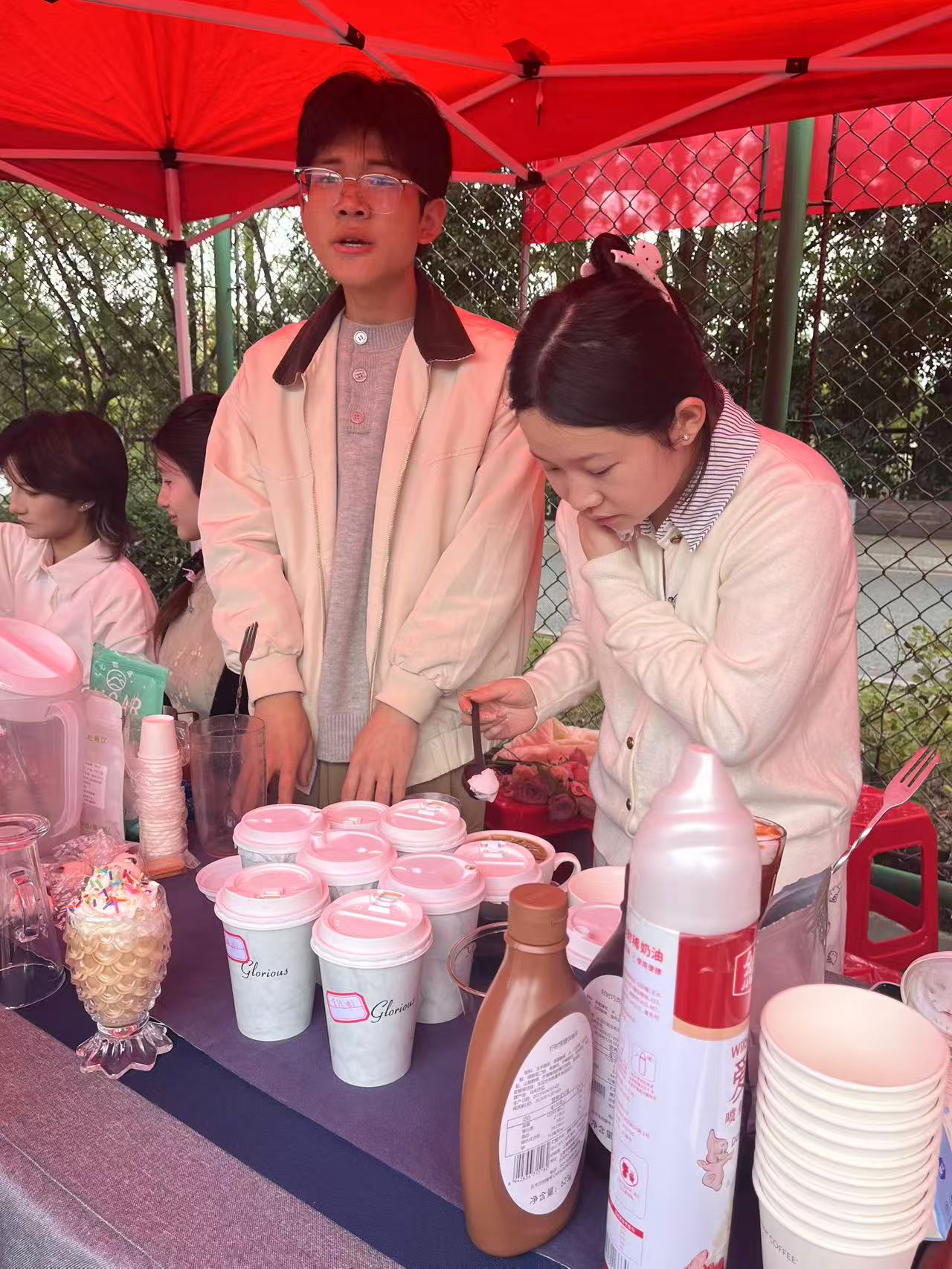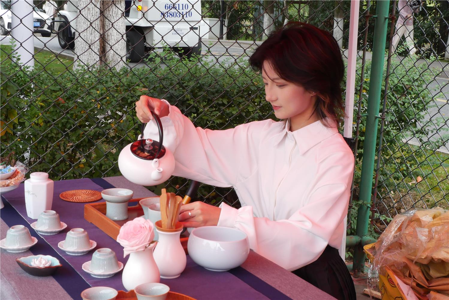 在356体育在线官网的展区,茶艺表演区茶香袅袅,学生身着传统服饰,通过行云流水的动作演绎茶道精髓;咖啡调制区则充满现代气息,创意拉花与特色饮品吸引观众驻足品尝;插花展台前,几组造型别致的花艺作品将自然之美与艺术构思完美结合,展现学生对生活美学的独特理解。