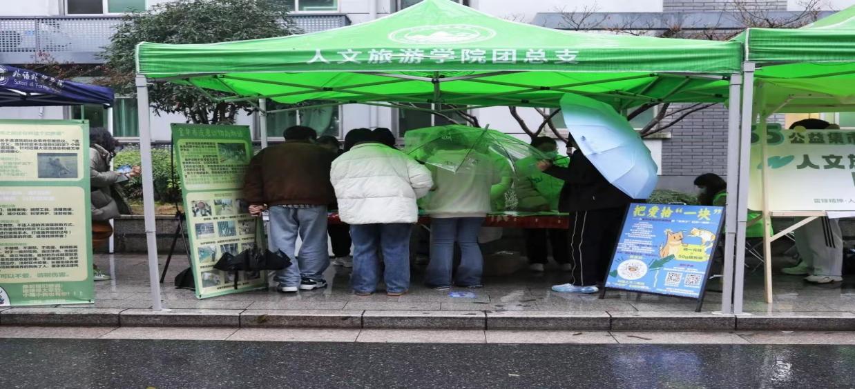 活动当天,团委学生会和爱心社的同学们在大雨澎湃中依然展现出极高的热情,活动负责人对“如何关爱流浪动物”进行主题宣讲,路过的同学积极参与募捐活动,有些同学为救助流浪猫狗募捐百元。活动结束后,志愿者同学为参与募捐的同学送上暖心盲盒礼物。