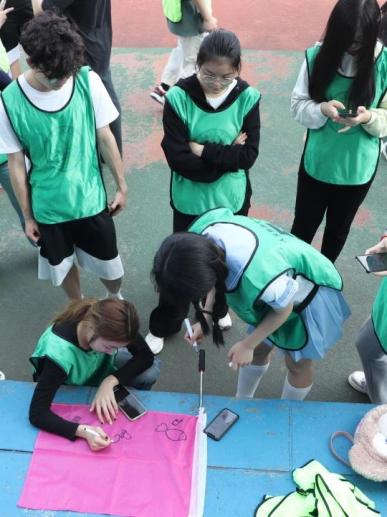 活动中各个组展示风采展示队歌、队旗、以及响亮的口号,营造出欢乐的氛围,增添了活动的趣味性。每个小组在精心制作本队的队旗,展示出本组的独特风采,每个队员都参与其中,一片和谐融洽的景象。