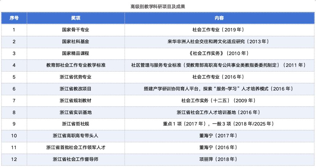 义乌工商职业技术学院社会工作专业是国家骨干专业,浙江省优势专业,浙江省社会工作人才培训基地。拥有国家级精品课程、一流的师资团队、一流的政社校协同育人平台。社会工作是党和政府正在大力支持发展的专业,人才需求量大,就业前景广阔,就业面向社会工作机构、社区、福利事业单位等。